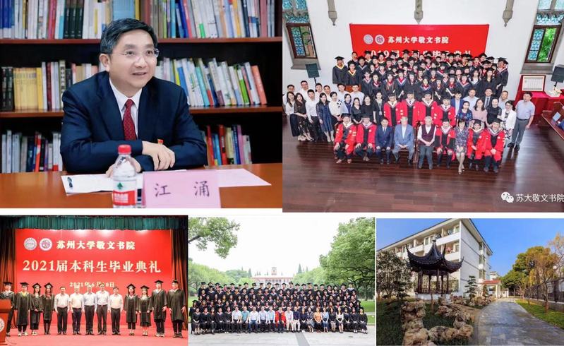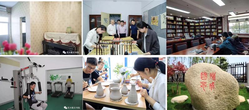 在苏州大学本部校园东北侧,有一座宁静而别致的小院落,这就是我们的敬文书院。园林式环境,使它和周围的宿舍楼相比,显得雅致。这里有导师办公室、积学书房、咖啡吧、谈心室、自修室、书画演习室、钢琴房、健身房、洗衣房、厨房等,无论生活还是学习,书院都希望能让你体会到方便与温馨。