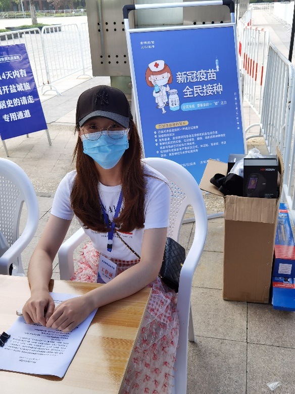 钱笑语同学通过深入社区,上门收集居民新冠疫苗接种情况了解到,绝大多数居民可以做到主动接种疫苗并配合社区调查,社区疫苗接种率基本可以达到85%。她协助上门走访和录入信息,从中感悟良多。她表示虽然自己参与志愿活动只有一天的时间,个人力量也十分有限,但是能帮助社区收集更多的数据,为疫情防控献出自己的一份努力,还是很有成就感的一次体验。