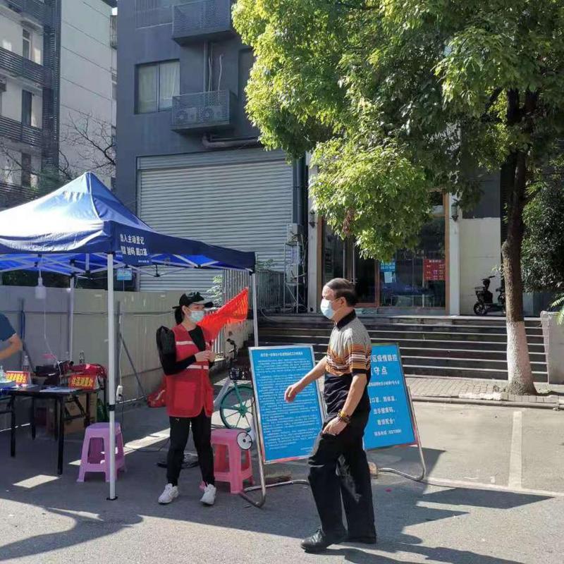 王晓天同学在经过报名、审核后成功成为了一名帮助检查健康码、测量体温的志愿者,于社区入口处协助检查行人的健康码,配合管理秩序,提醒骑车闯过不配合的群众。她相信这样的状态很快就会解除,一切都会畅通起来。